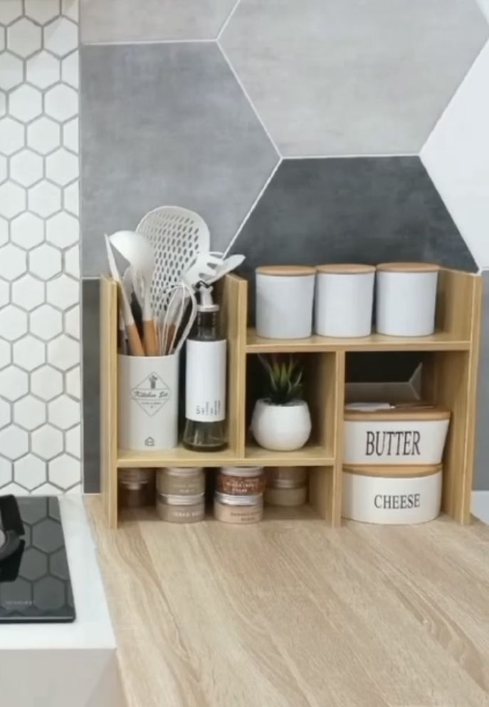 المطبخ ديالي كان كيعطيني صداع، التوابل والكؤوس مكدسين. دابا، مع الرف، كلشي منظم وقدامي بطريقة عملية وجميلة.